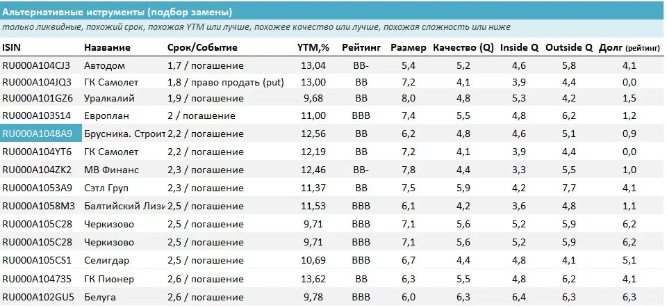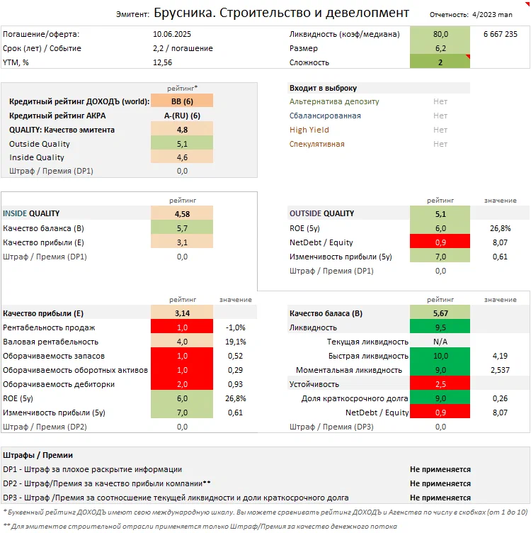 Эти облигации Брусники на текущий момент входят в сбалансированную стратегию нашего сервиса анализ облигаций, но на грани по значению качества.