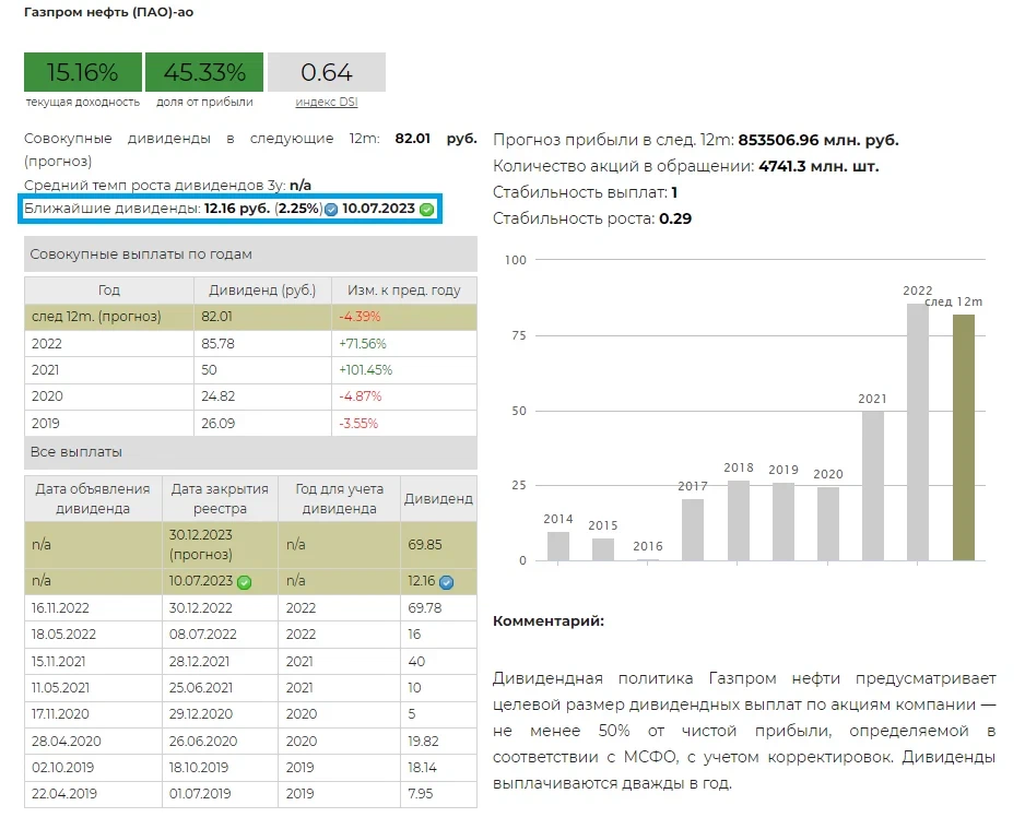 Газпром нефть - дивиденды