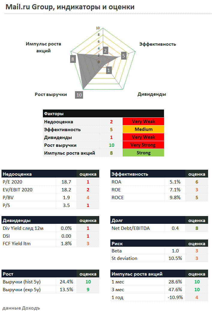 Mail.ru Group является классической акцией роста. Такие компании, как правило, дорого оцениваются рынком из-за ожиданий роста результатов быстрее среднерыночных. Долгосрочный потенциал роста акций – лучше рынка.