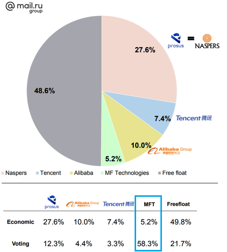 Контролирующим акционером является южноафриканский медиахолдинг «Naspers» (через компанию «Prosus» владеет 28% акций).