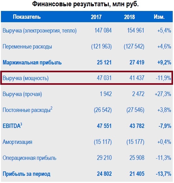 Мосэнерго: падение платежей за мощность снижает прибыль компании по итогам 2018 года