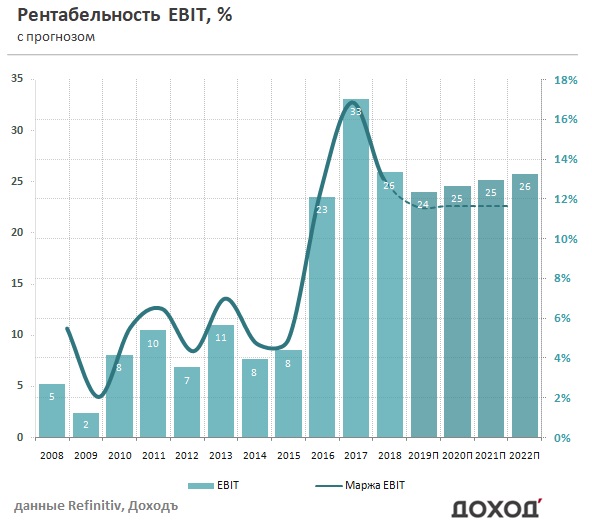 Сокращение платежей по ДПМ продолжит оказывать негативное влияние на отчетность компании. Мы ждем, что по итогам 2019 года операционная прибыль сократится до 15-17 млрд. рублей. Долгосрочно компенсировать потери призвана новая государственная программа модернизации мощностей с гарантированным возвратом на инвестиции в 14%, однако ее положительный эффект проявится лишь через 5-6 лет. Краткосрочно она приведет к росту инвестиций, необходимости увеличивать заимствования и минимальному уровню дивидендов.
