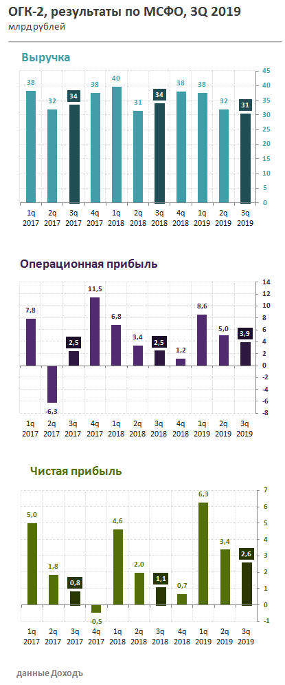 ОГК-2, крупнейшая российская компания тепловой генерации, опубликовала ожидаемо сильные финансовые результаты по итогам 3 квартала 2019 года