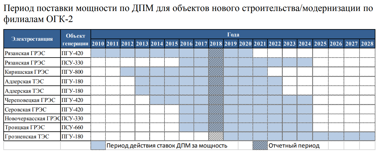 В 2019 году ОГК-2 завершила программу модернизации мощностей ДПМ-1. Завершающим объектом программы стал ввод в эксплуатацию второго блока Грозненской ТЭС в июне 2019 года. Компания еще несколько лет будет получать повышенные платежи за мощность, пик которых придется на 2019-2020 годы.
