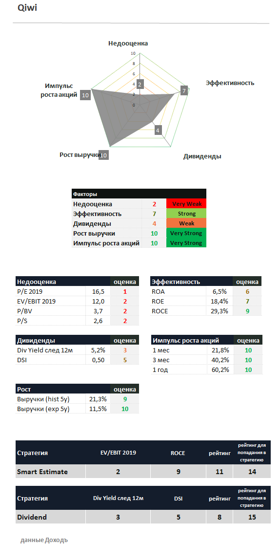 Qiwi в сервисе "Анализ акций"