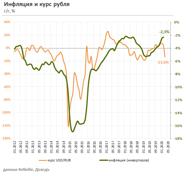 Текущее ослабление национальной валюты даст порядка 0,7%-1% к снижению показателя, хотя краткосрочно он, вероятно, вырастет на фоне ажиотажа. В среднесрочной перспективе внутренний спрос продолжит оказывать дефляционное давление на цены.