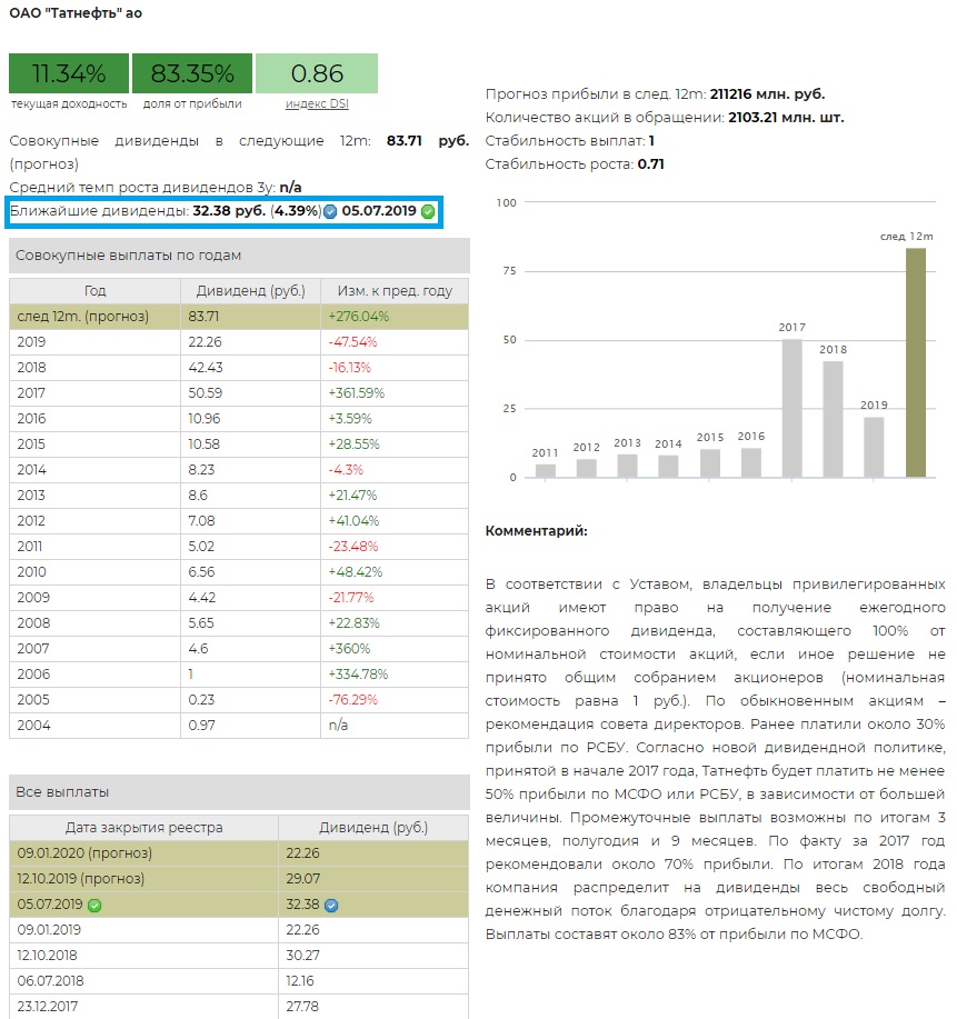 Татнефть Дивиденды префы