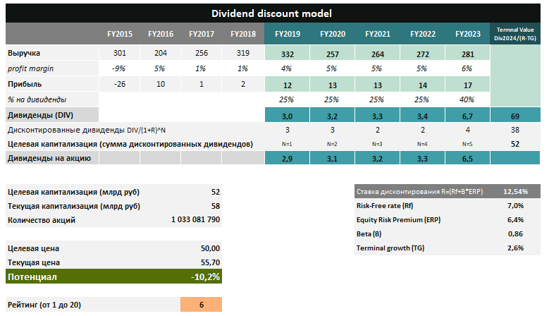 Мы полагаем, что уход ТМК с американского рынка положительно скажется на марже чистой прибыли компании за счет сокращения расходов на обслуживание процентов. Тем не менее, высокая долговая нагрузка не позволит направлять на дивиденды значительную часть прибыли. DCF-модель формирует низкий потенциал роста акций, который отражен в рейтинге на уровне 6 из 20. Рейтинг соответствует рекомендации «Sell» - уменьшать долю акций ТМК в портфеле по сравнению с долей в бенчмарке.