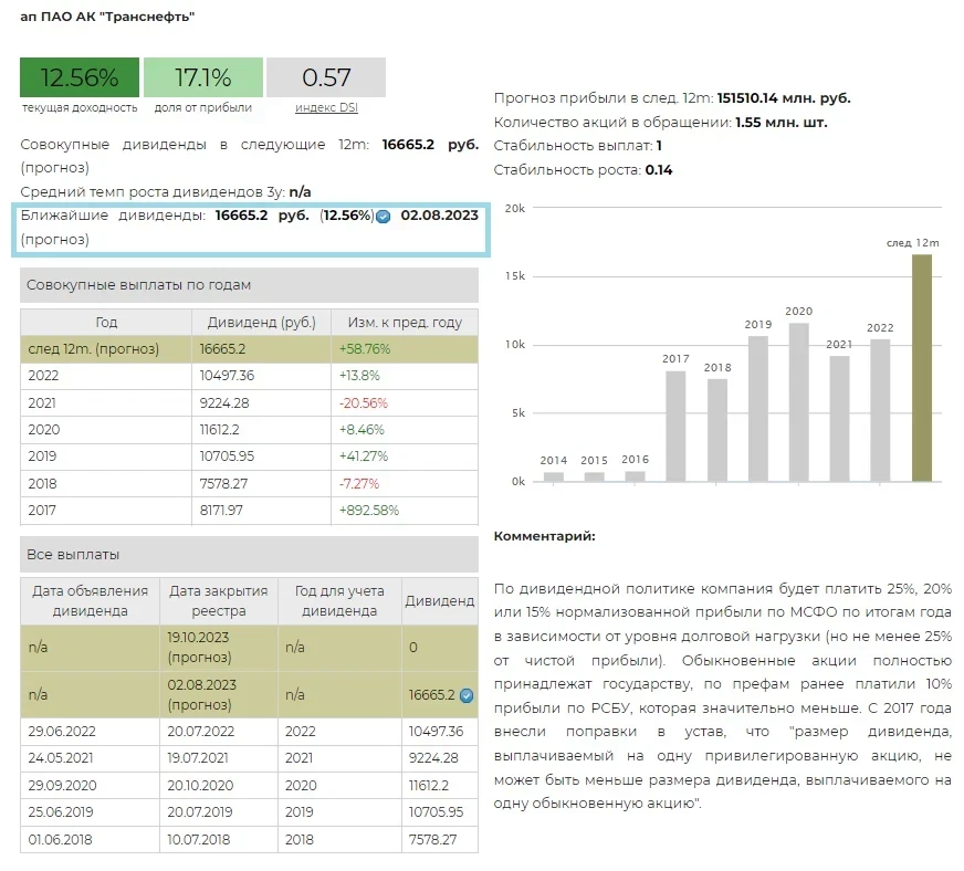 Транснефть рекомендовала дивиденды за 2022 года в размере 16 665,2 рублей на привилегированную акцию. Это рекордные дивиденды за всю историю компании.