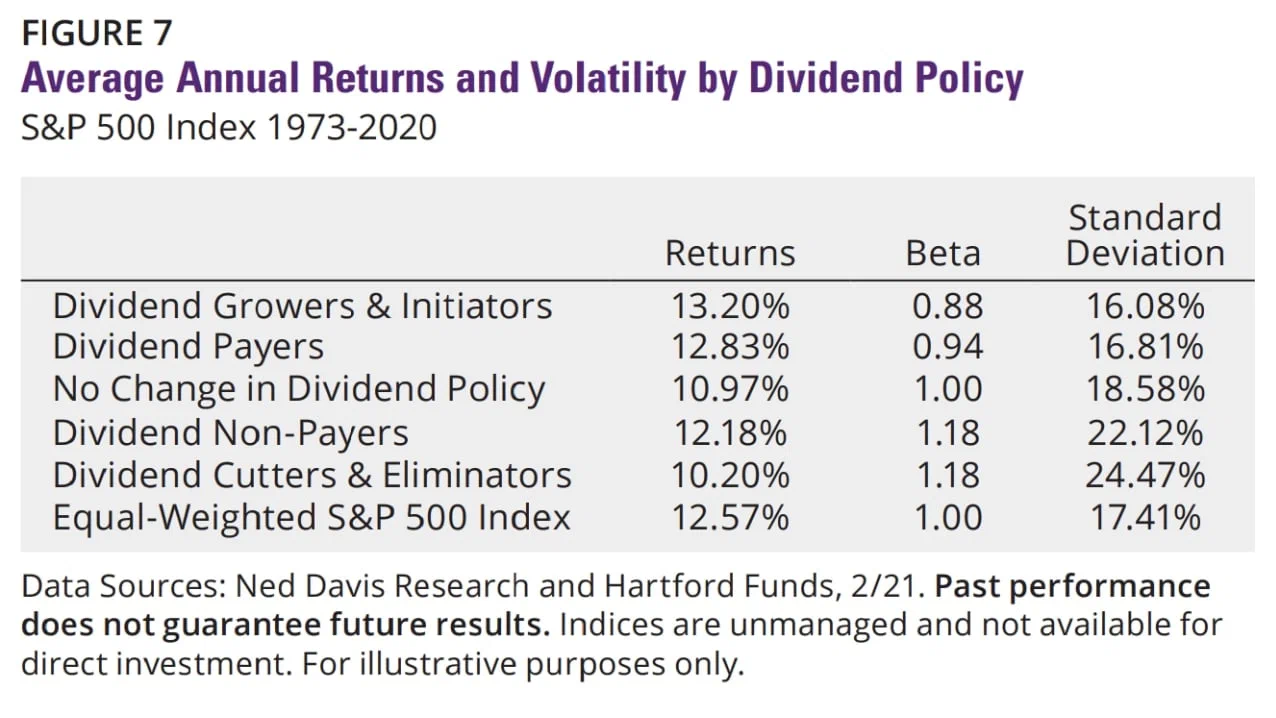 Согласно полученным данным, компании, сокращающие дивиденды или перестающие их платить, показывают более низкую долгосрочную доходность и бОльшую волатильность как по сравнению с широким рынком, так и с любой категорией "дивидендных" и "не дивидендных" акций.
