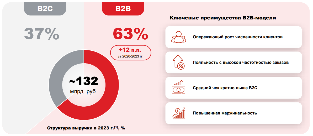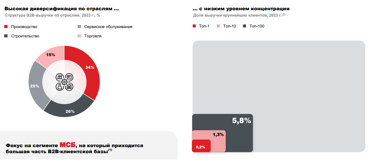 Помимо обслуживания клиентской базы в B2B-сегменте компания обладает лидирующей позицией в массовом B2C-сегменте, позволяющей максимизировать эффект масштаба.
