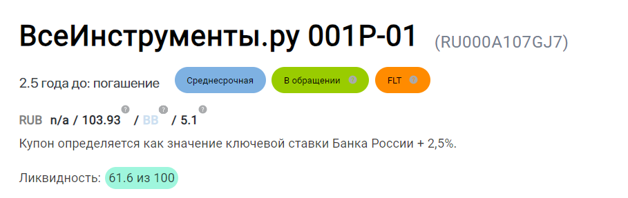 Облигации «ВсеИнструменты.ру» в сервисе «ДОХОДЪ Анализ облигаций»