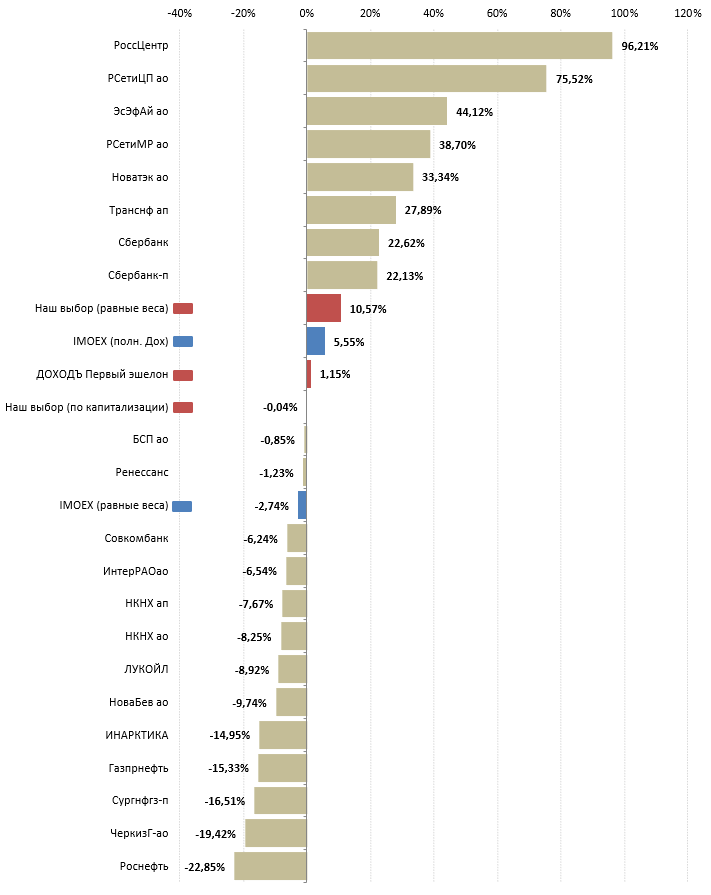 Мы используем наш выбор акций для формирования активных портфелей по отношению к Индексу МосБиржи. Роль таких портфелей обычно является вспомогательной в рамках общей стратегии долгосрочного инвестирования. Активные позиции из этой стратегии используются в нашем биржевом фонде WILD ETF и ОПИФ "ДОХОДЪ. Российские акции. Первый эшелон", в том числе, доступном для легкой покупки на платформе ФинУслуги.