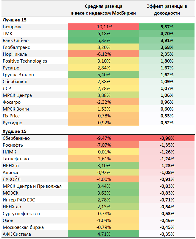 Влияние выбора и веса акций на доходность активного портфеля по сравнению с индексом МосБиржи в 2023 году