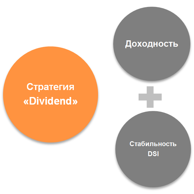 Стратегия нацелена на получение дохода путем инвестирования в дивидендные акции крупных компаний российского рынка. Исследования показывают, что выбор акций, приносящих наиболее высокую дивидендную доходность,  позволяет получать премию в совокупной доходности по сравнению с индексами акций.