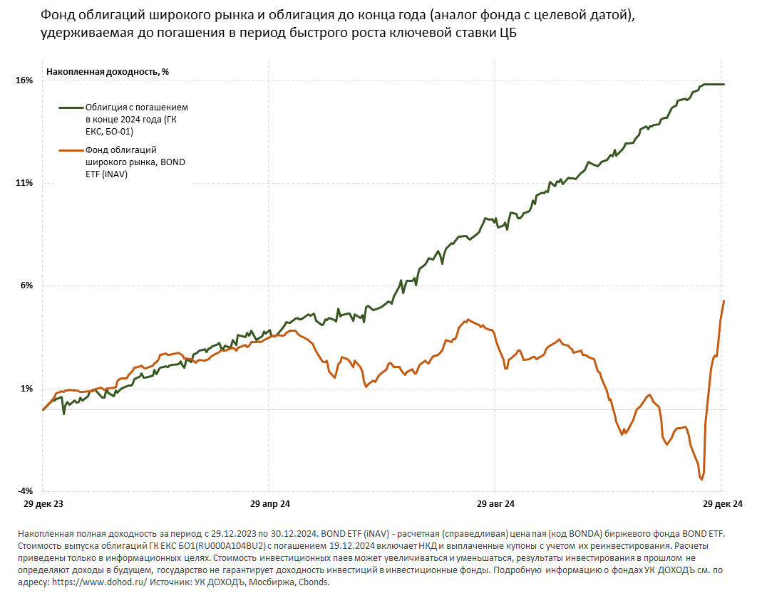 Классические фонды, как правило, подходят для долгосрочных вложений. На длительном горизонте все убытки и прибыли от продажи облигаций до погашения становятся нейтральными, а доходность — более предсказуемой. Однако на коротких периодах, особенно при росте ставок, они могут оказывать негативное влияние на портфель.