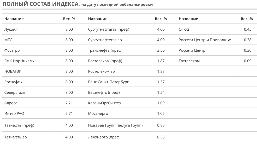 Состав индекса IRDIV по состоянию на дату ребалансировки. Источник: УК ДОХОДЪ