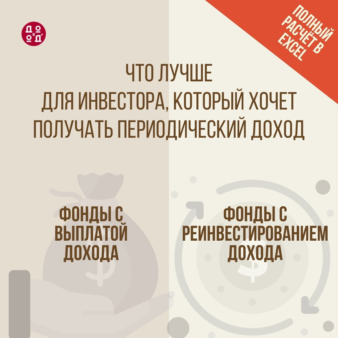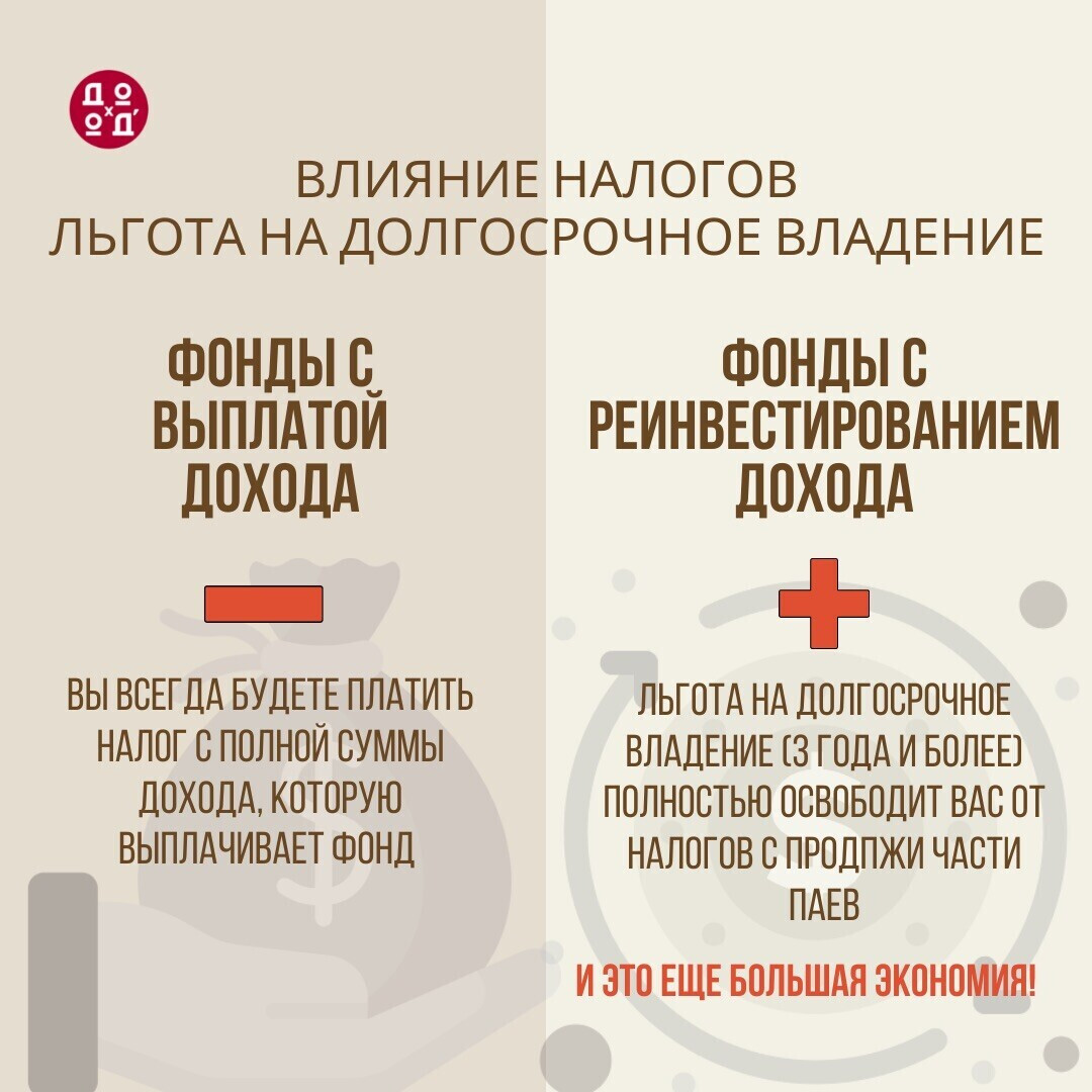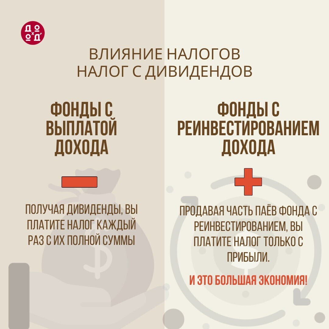 Хотя в этой статье мы подробно объясняем, что из-за налоговых особенностей (при прочих равных) вам выгоднее (вы физически будете получать больше денег) формировать периодический доход, продавая часть паев фондов с реинвестированием, чем получая выплаты. Последние будут облагаться налогом полностью, в отличие от налогообложения только прибыли при продаже.