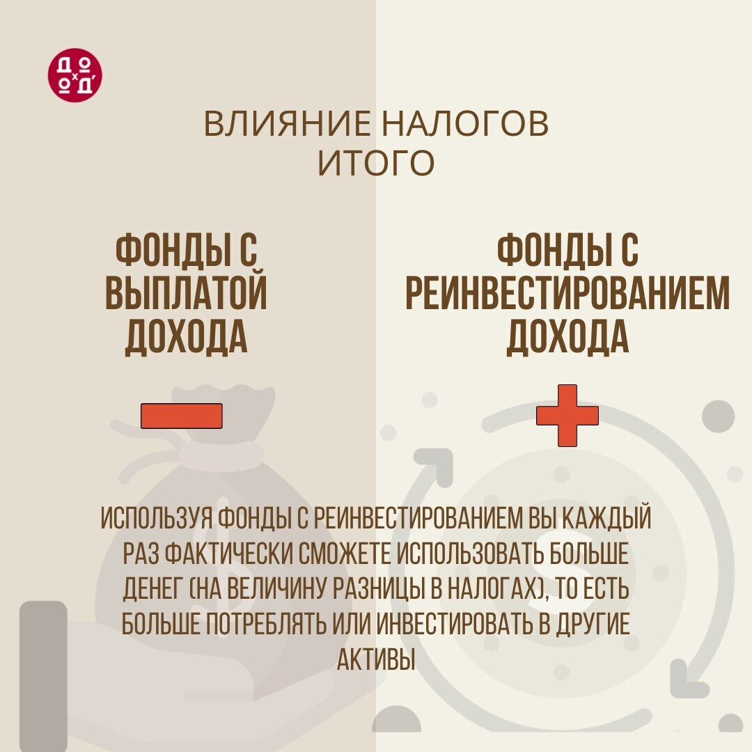 Но как только такие особенности исчезают (например, в Европе или в России), большинство фондов не осуществляют выплаты и реинвестируют все доходы без налогов. Так как это выгодно инвесторам.