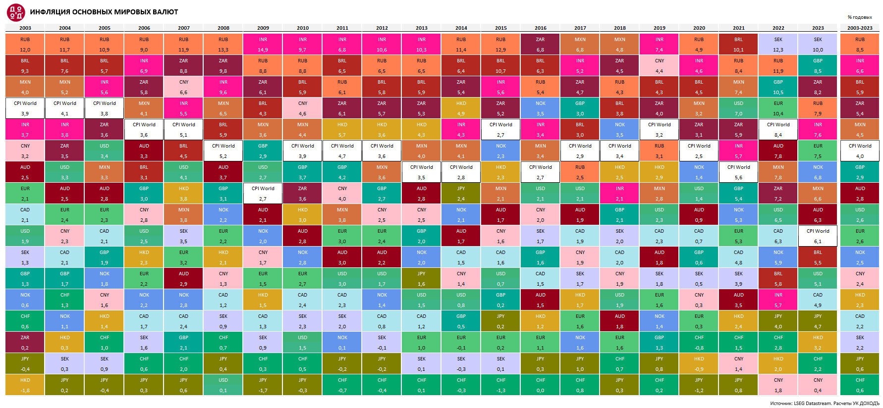 - От кеша до недвижимости. Доходности различных активов в RUB, 2003-2023