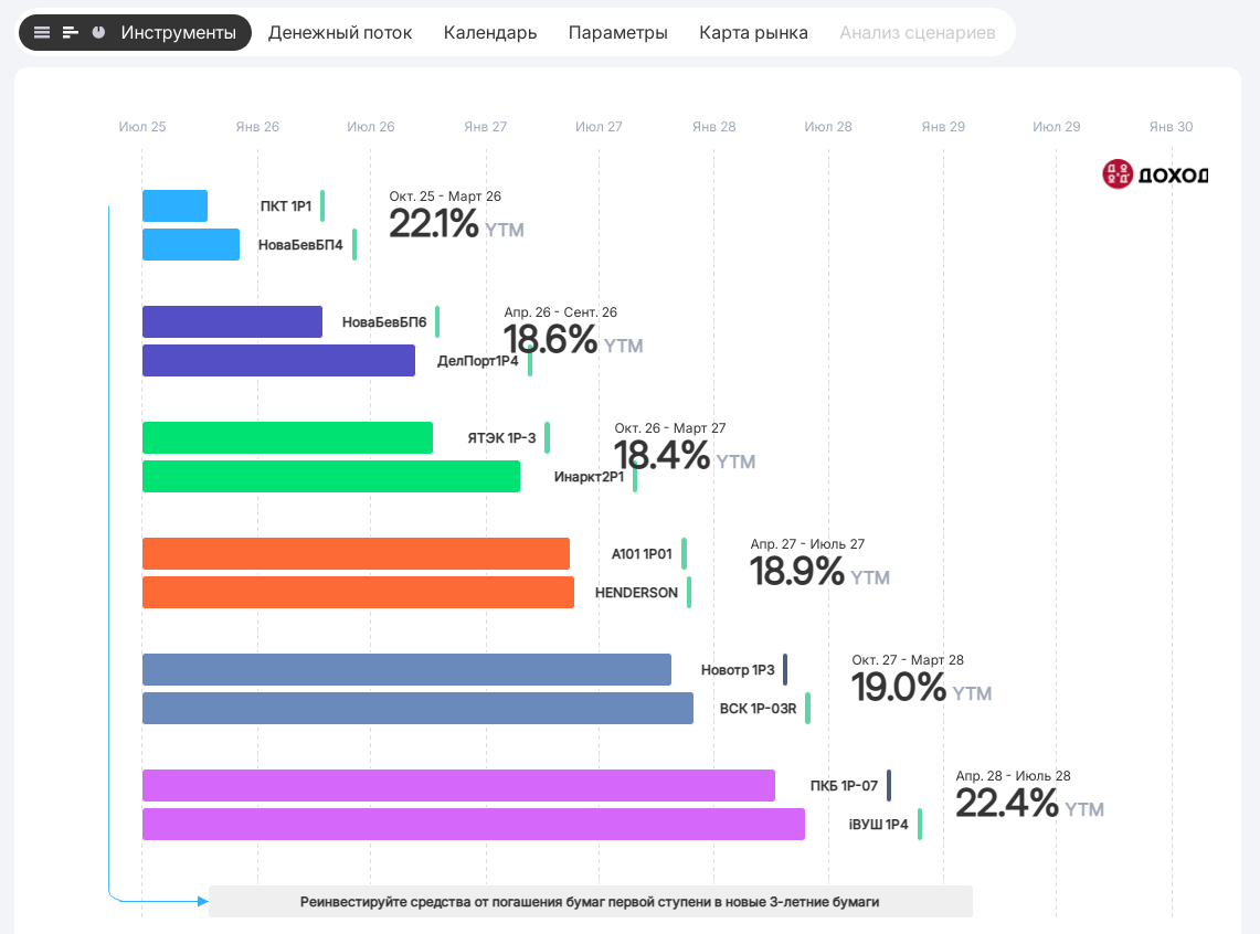 С их помощью можно автоматизировать весь процесс работы с лестницей – подбор облигаций, реинвестирование и контроль рисков.