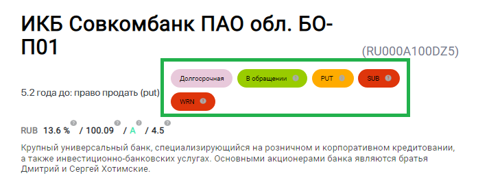 Индикаторы особенностей облигации на странице отдельной облигации в сервисе ДОХОДЪ «Анализ облигаций»