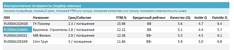 Пример: БРУСНИКА (RU000A1048A9), 2.8 лет / YTM:13.0%
