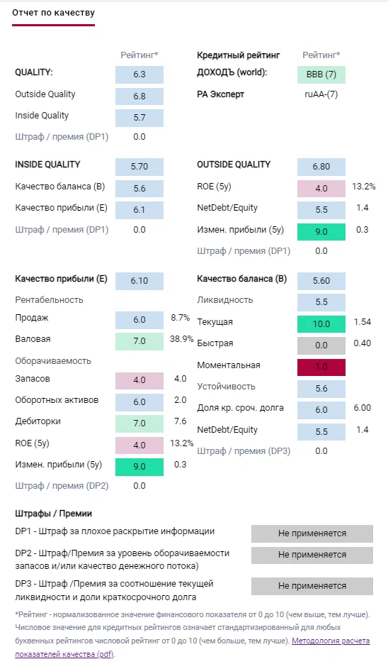 Отчет по качеству эмитента более подробно