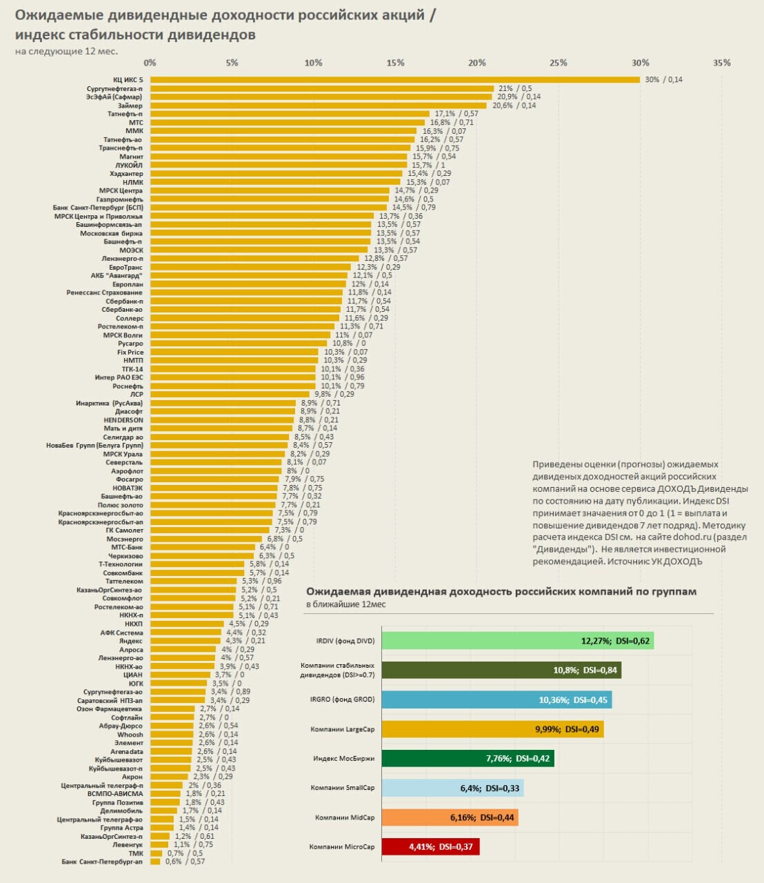 Ожидаемые дивидендные доходности и DSI акций российских компаний