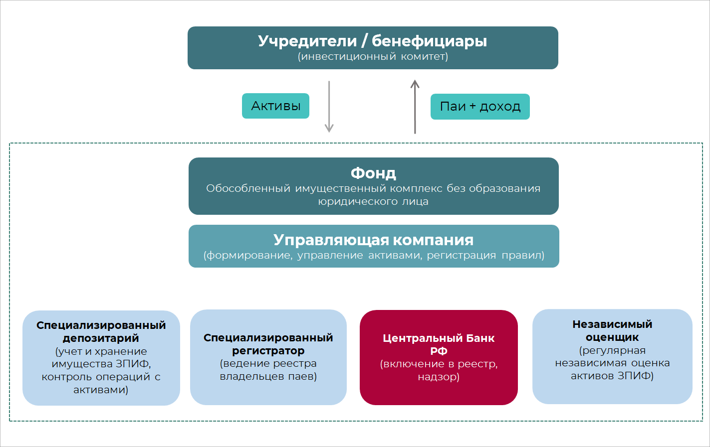 Управляющая компания осуществляет функционирование ЗПИФ, а многочисленные независимые структуры контролируют ее деятельность и работу фонда